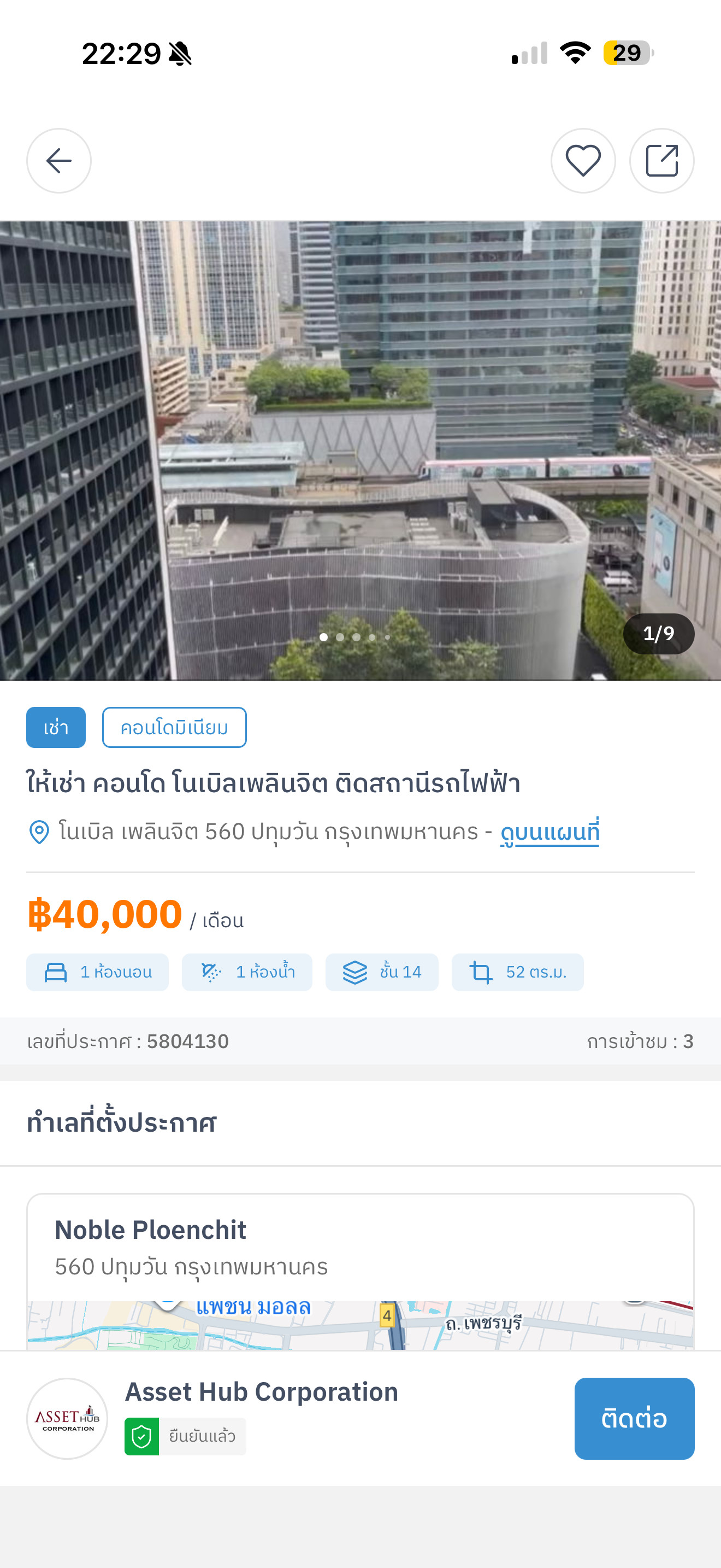 หาห้องให้ลูกค้าคอนโด 2 ห้องนอน แถว BTS เพลินจิต พร้อมชมพรุ่งนี้